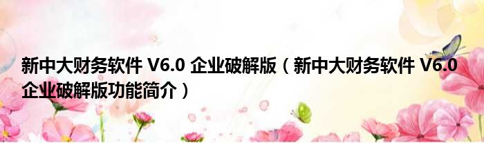 新中大财务软件 V6.0 企业破解版(新中大财务软件 V6.0 企业破解版功能简介)