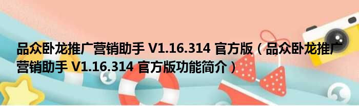 品众卧龙推广营销助手 V1.16.314 官方版(品众卧龙推广营销助手 V1.16.314 官方版功能简介)