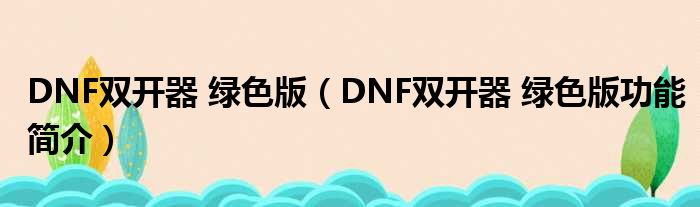 导读 大家好,关于DNF双开器 绿色版,DNF双开器 绿色版功能简介这个很多人还不知道,小勒来为大家解答以上的问题,现在让我们一起来看看吧!