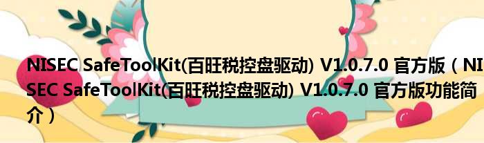 NISEC SafeToolKit(百旺税控盘驱动) V1.0.7.0 官方版(NISEC SafeToolKit(百旺税控盘驱动) V1.0.7.0 官方版功能简介)