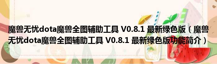 魔兽无忧dota魔兽全图辅助工具 V0.8.1 最新绿色版(魔兽无忧dota魔兽全图辅助工具 V0.8.1 最新绿色版功能简介)