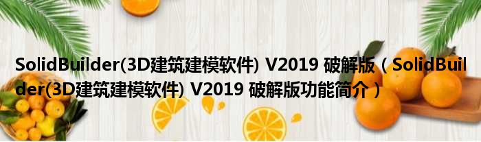 SolidBuilder(3D建筑建模软件) V2019 破解版(SolidBuilder(3D建筑建模软件) V2019 破解版功能简介)