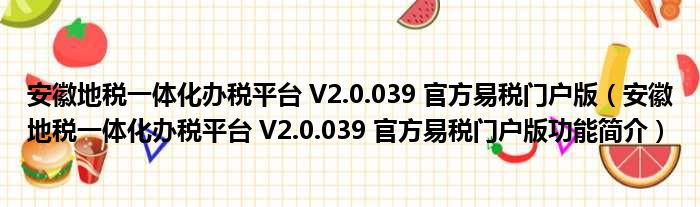 安徽地税一体化办税平台 V2.0.039 官方易税门户版(安徽地税一体化办税平台 V2.0.039 官方易税门户版功能简介)