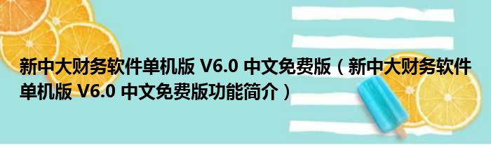 新中大财务软件单机版 V6.0 中文免费版(新中大财务软件单机版 V6.0 中文免费版功能简介)