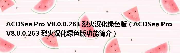 ACDSee Pro V8.0.0.263 烈火汉化绿色版(ACDSee Pro V8.0.0.263 烈火汉化绿色版功能简介)
