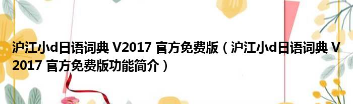 导读 大家好,关于沪江小d日语词典 V2017 官方免费版,沪江小d日语词典 V2017 官方免费版功能简介这个很多人还不知道,小勒来为大家解答以上的