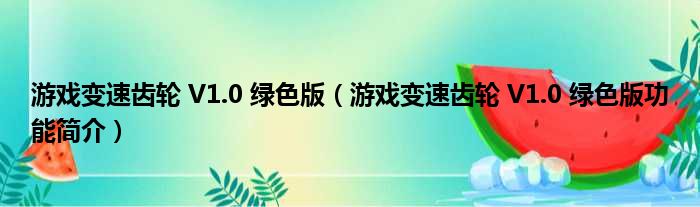 游戏变速齿轮 V1.0 绿色版(游戏变速齿轮 V1.0 绿色版功能简介)