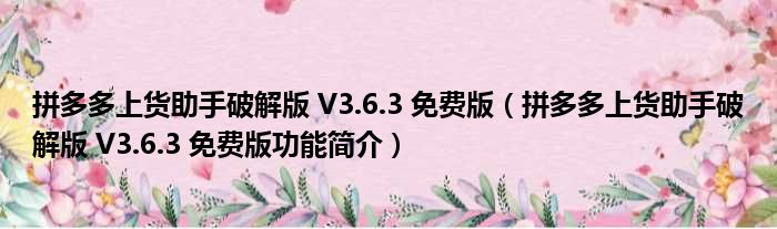 导读 大家好,关于拼多多上货助手破解版 V3 6 3 免费版,拼多多上货助手破解版 V3 6 3 免费版功能简介这个很多人还不知道,小勒来为大家解答以