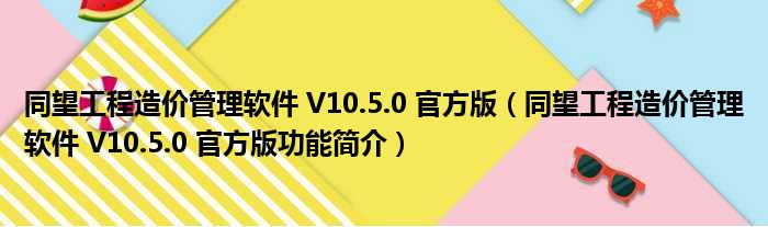 同望工程造价管理软件 V10.5.0 官方版(同望工程造价管理软件 V10.5.0 官方版功能简介)
