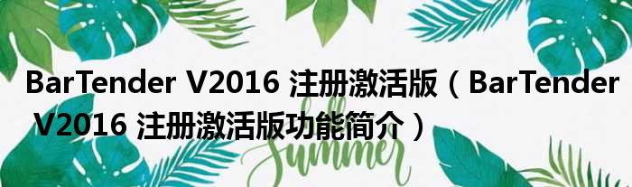 BarTender V2016 注册激活版(BarTender V2016 注册激活版功能简介)