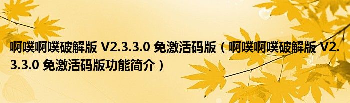 啊噗啊噗破解版 V2.3.3.0 免激活码版(啊噗啊噗破解版 V2.3.3.0 免激活码版功能简介)