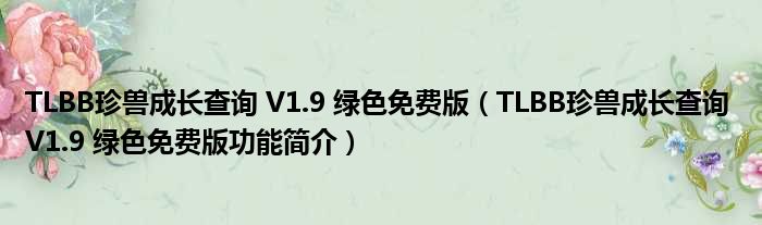 TLBB珍兽成长查询 V1.9 绿色免费版(TLBB珍兽成长查询 V1.9 绿色免费版功能简介)