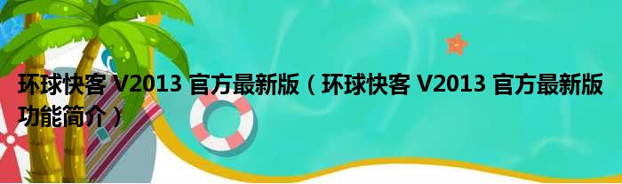 环球快客 V2013 官方最新版(环球快客 V2013 官方最新版功能简介)