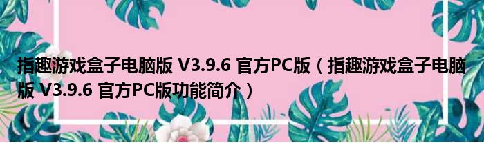 指趣游戏盒子电脑版 V3.9.6 官方PC版(指趣游戏盒子电脑版 V3.9.6 官方PC版功能简介)