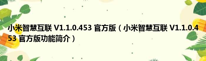 小米智慧互联 V1.1.0.453 官方版(小米智慧互联 V1.1.0.453 官方版功能简介)