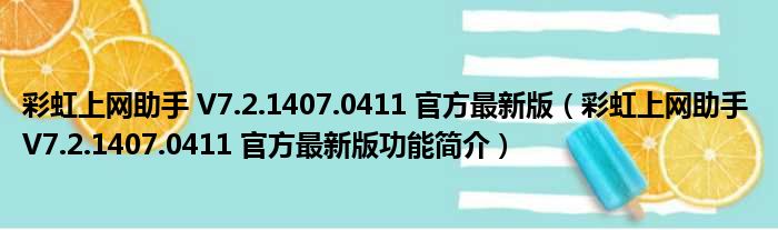 彩虹上网助手 V7.2.1407.0411 官方最新版(彩虹上网助手 V7.2.1407.0411 官方最新版功能简介)