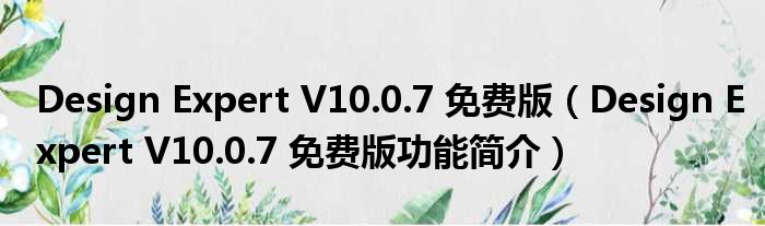Design Expert V10.0.7 免费版(Design Expert V10.0.7 免费版功能简介)