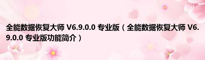 全能数据恢复大师 V6.9.0.0 专业版(全能数据恢复大师 V6.9.0.0 专业版功能简介)
