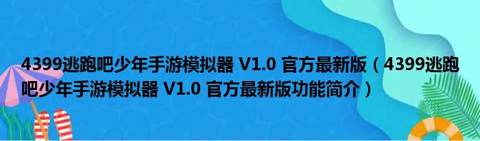 导读 大家好,关于4399逃跑吧少年手游模拟器 V1 0 官方最新版,4399逃跑吧少年手游模拟器 V1 0 官方最新版功能简介这个很多人还不知道,小勒来