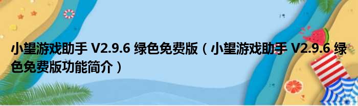 小望游戏助手 V2.9.6 绿色免费版(小望游戏助手 V2.9.6 绿色免费版功能简介)