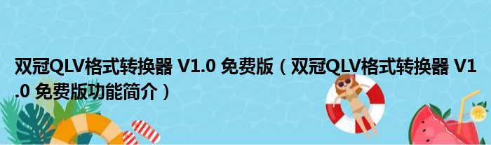 双冠QLV格式转换器 V1.0 免费版(双冠QLV格式转换器 V1.0 免费版功能简介)