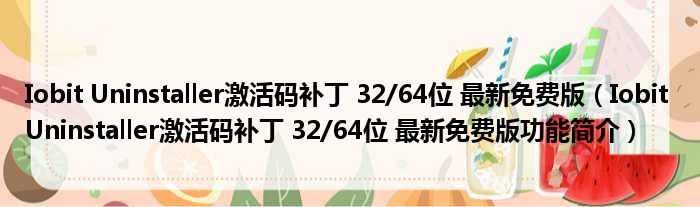 导读 大家好,关于Iobit Uninstaller激活码补丁 32 64位 最新免费版,Iobit Uninstaller激活码补丁 32 64位 最新免费版功能简介这个很多人