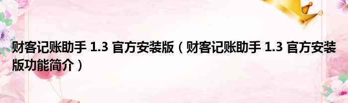 财客记账助手 1.3 官方安装版(财客记账助手 1.3 官方安装版功能简介)