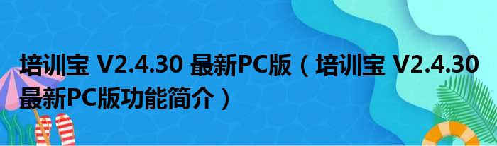 导读 大家好,关于培训宝 V2 4 30 最新PC版,培训宝 V2 4 30 最新PC版功能简介这个很多人还不知道,小勒来为大家解答以上的问题,现在让我们一