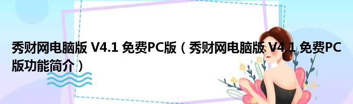 秀财网电脑版 V4.1 免费PC版(秀财网电脑版 V4.1 免费PC版功能简介)