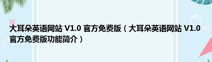 大耳朵英语网站 V1.0 官方免费版(大耳朵英语网站 V1.0 官方免费版功能简介)