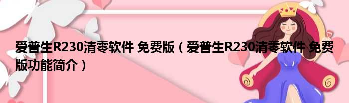 爱普生R230清零软件 免费版(爱普生R230清零软件 免费版功能简介)
