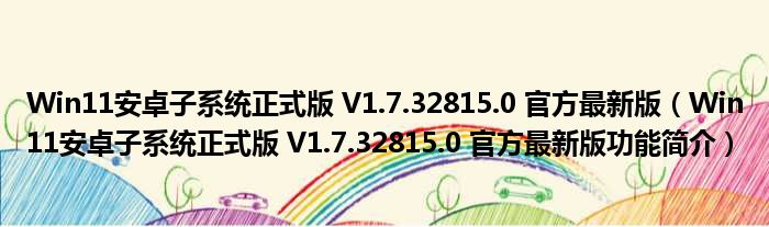 Win11安卓子系统正式版 V1.7.32815.0 官方最新版(Win11安卓子系统正式版 V1.7.32815.0 官方最新版功能简介)