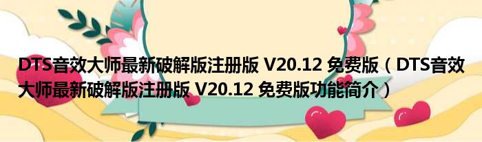 DTS音效大师最新破解版注册版 V20.12 免费版(DTS音效大师最新破解版注册版 V20.12 免费版功能简介)