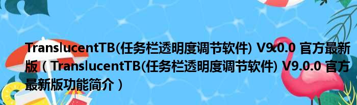 导读 大家好,关于TranslucentTB(任务栏透明度调节软件) V9 0 0 官方最新版,TranslucentTB(任务栏透明度调节软件) V9 0 0 官方最新版功能简