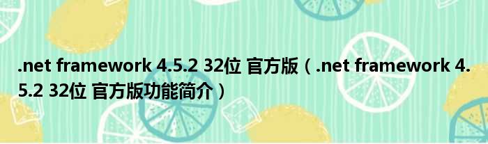 导读 大家好,关于 net framework 4 5 2 32位 官方版, net framework 4 5 2 32位 官方版功能简介这个很多人还不知道,小勒来为大家解答以