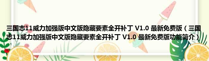 三国志11威力加强版中文版隐藏要素全开补丁 V1.0 最新免费版(三国志11威力加强版中文版隐藏要素全开补丁 V1.0 最新免费版功能简介)
