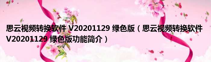 思云视频转换软件 V20201129 绿色版(思云视频转换软件 V20201129 绿色版功能简介)