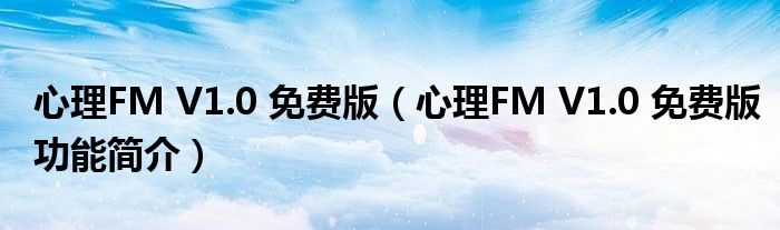 心理FM V1.0 免费版(心理FM V1.0 免费版功能简介)
