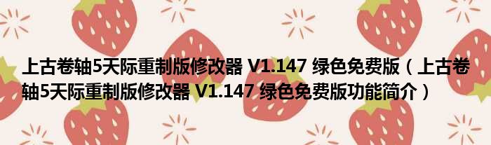 导读 大家好,关于上古卷轴5天际重制版修改器 V1 147 绿色免费版,上古卷轴5天际重制版修改器 V1 147 绿色免费版功能简介这个很多人还不知道,