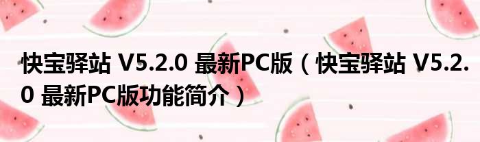 快宝驿站 V5.2.0 最新PC版(快宝驿站 V5.2.0 最新PC版功能简介)