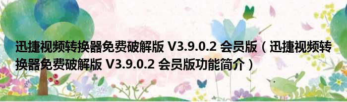 迅捷视频转换器免费破解版 V3.9.0.2 会员版(迅捷视频转换器免费破解版 V3.9.0.2 会员版功能简介)