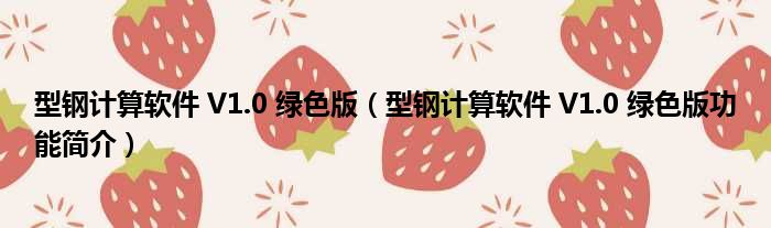 型钢计算软件 V1.0 绿色版(型钢计算软件 V1.0 绿色版功能简介)