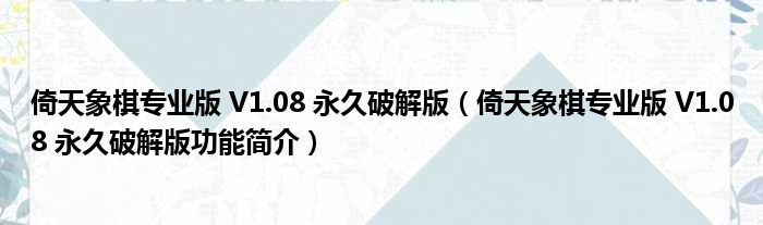倚天象棋专业版 V1.08 永久破解版(倚天象棋专业版 V1.08 永久破解版功能简介)