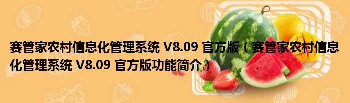 赛管家农村信息化管理系统 V8.09 官方版(赛管家农村信息化管理系统 V8.09 官方版功能简介)