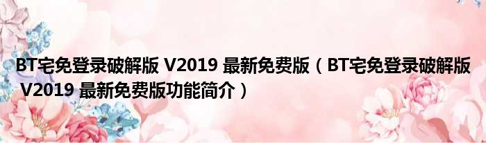 BT宅免登录破解版 V2019 最新免费版(BT宅免登录破解版 V2019 最新免费版功能简介)