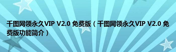 千图网领永久VIP V2.0 免费版(千图网领永久VIP V2.0 免费版功能简介)