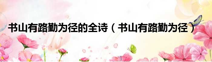 导读 大家好,今天小六子来为大家解答以下的问题,关于书山有路勤为径的全诗,书山有路勤为径这个很多人还不知道,现在让我们一起来看看吧!1、书