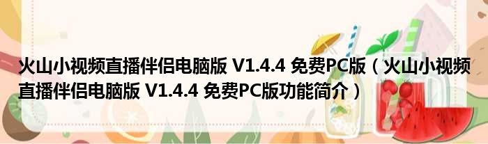 火山小视频直播伴侣电脑版 V1.4.4 免费PC版(火山小视频直播伴侣电脑版 V1.4.4 免费PC版功能简介)