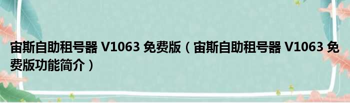 宙斯自助租号器 V1063 免费版(宙斯自助租号器 V1063 免费版功能简介)