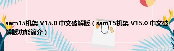 导读 大家好,关于sam15机架 V15 0 中文破解版,sam15机架 V15 0 中文破解版功能简介这个很多人还不知道,小勒来为大家解答以上的问题,现在让